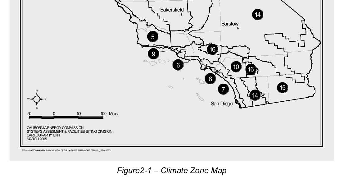 The California Energy Commission / California Energy Code account for variations in weather across California using a set of 16 climate zones.